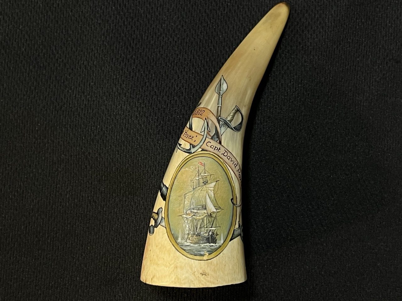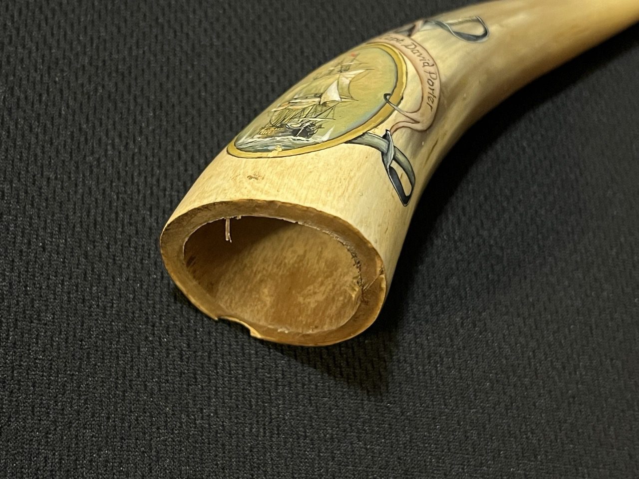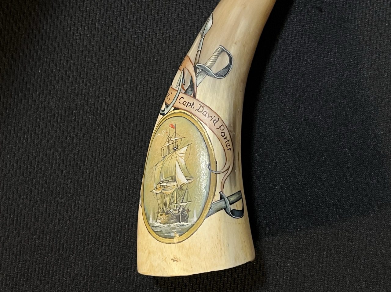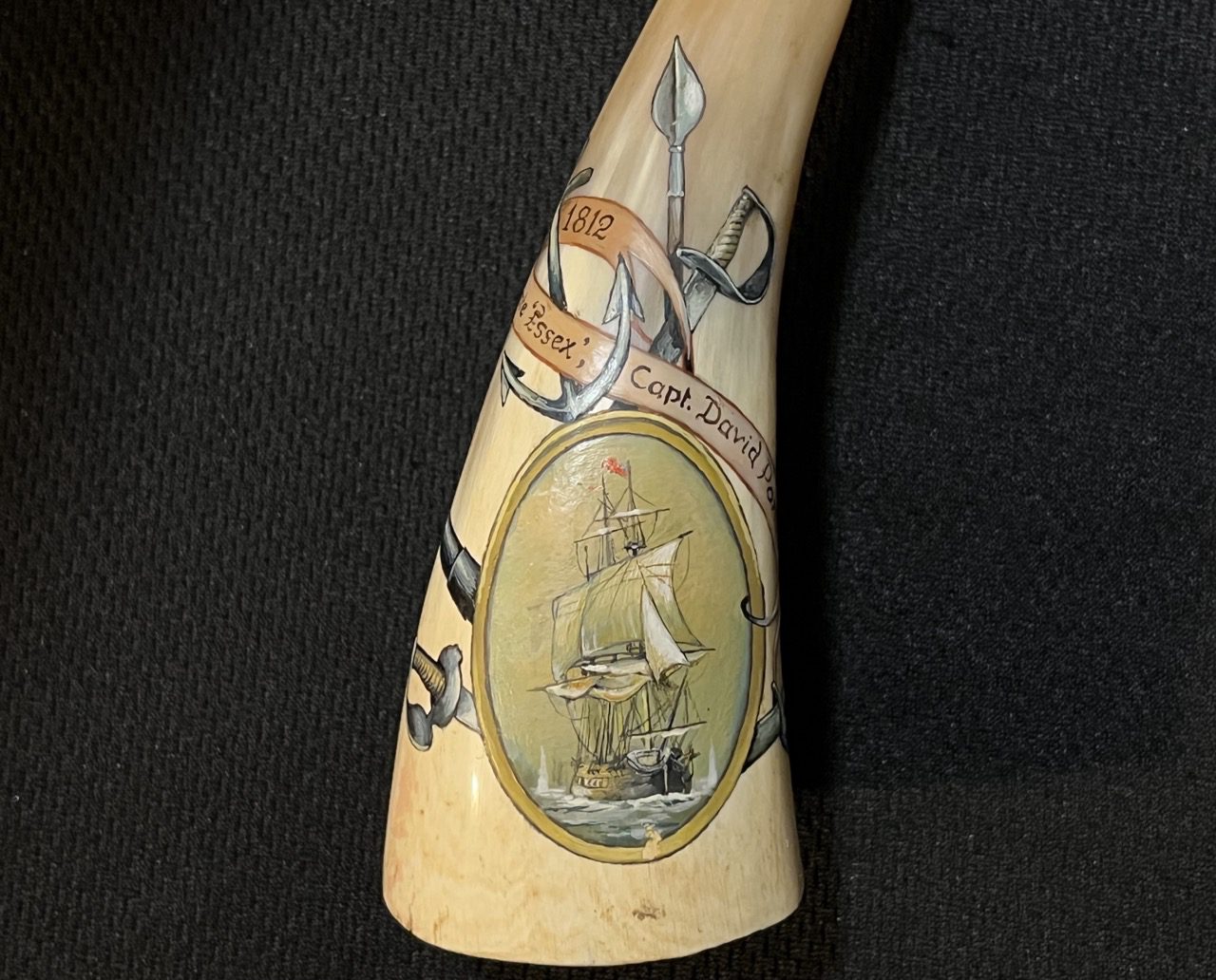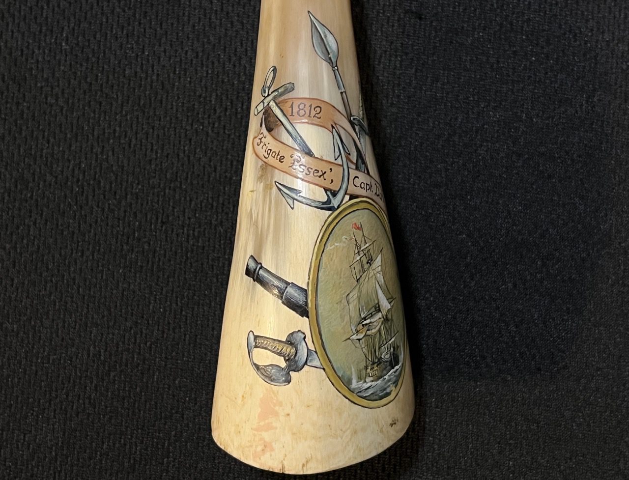 War of 1812 Scrimshaw Horn -Vintage Hand Painting of US Frigate Essex