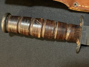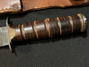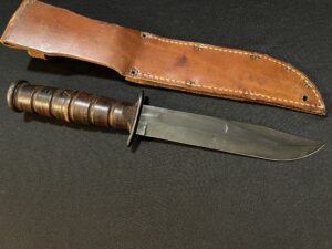 This guard-marked knife measures 12″ overall. The blade itself measures 7″. Many collectors refer to Mark 2’s as Kabars despite there having been a number of makers.