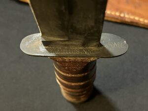 A Camillus USMC WWII knife in this condition rarely comes along. U.S. Marine Corps Mark 2’s are VERY hard to find as compared to the plentiful USN Mark 2’s.