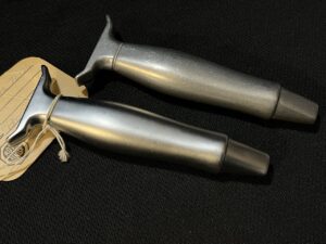 One of the Mark II handles has its original sample tag still attached! The Roto Finish tag is marked ‘Time: 6 Hours Total’. Second, it is marked ‘Machine: Process B’. Last, the Sample No. is written as ‘2502-2’.