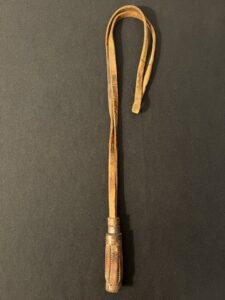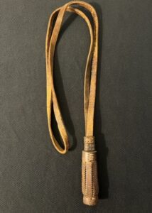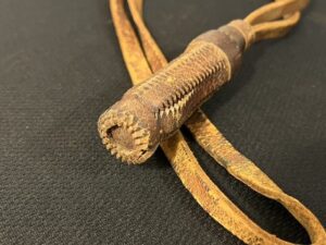This Japanese WW2 NCO sword leather knot is in exceptional condition! There is surface crazing on the leather of course–all is solid, and is at no risk of damage. The leather is soft and pliable. This knot could be carried in the field today.