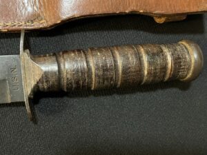 Identification: To properly identify this variation, look for “CAMILLUS, N.Y.” stamped on one side of the ricasso and “U.S.N.” on the other. In addition, confirm the presence of the threaded nut at the pommel.